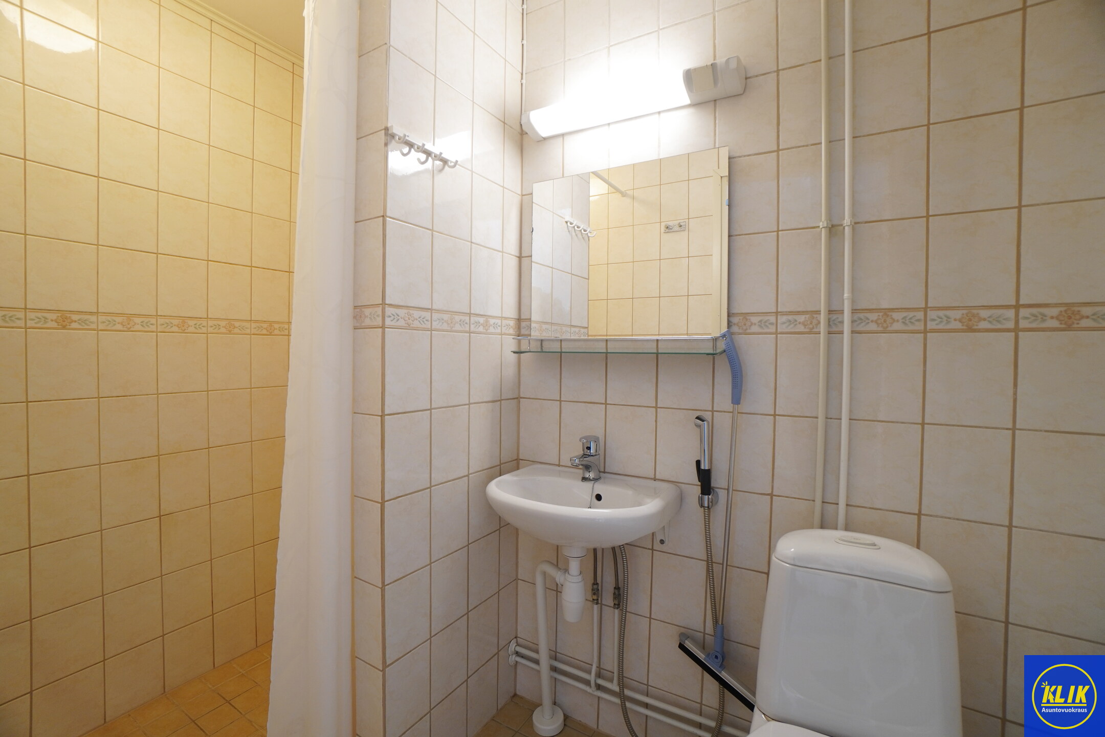 laattalattia; laattaseinä, , , suihku, , pesukonevalmius; Pesukone valmiina asunnossa,