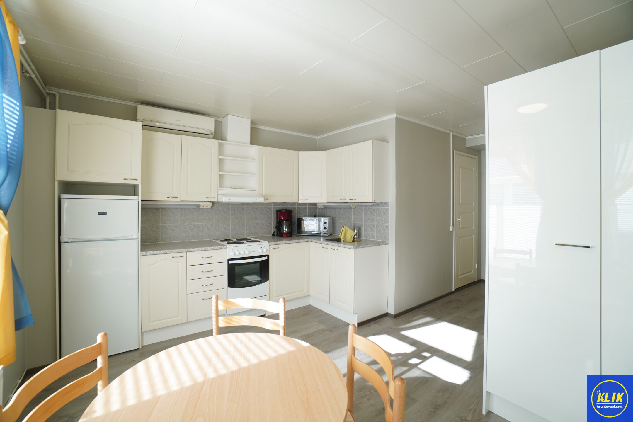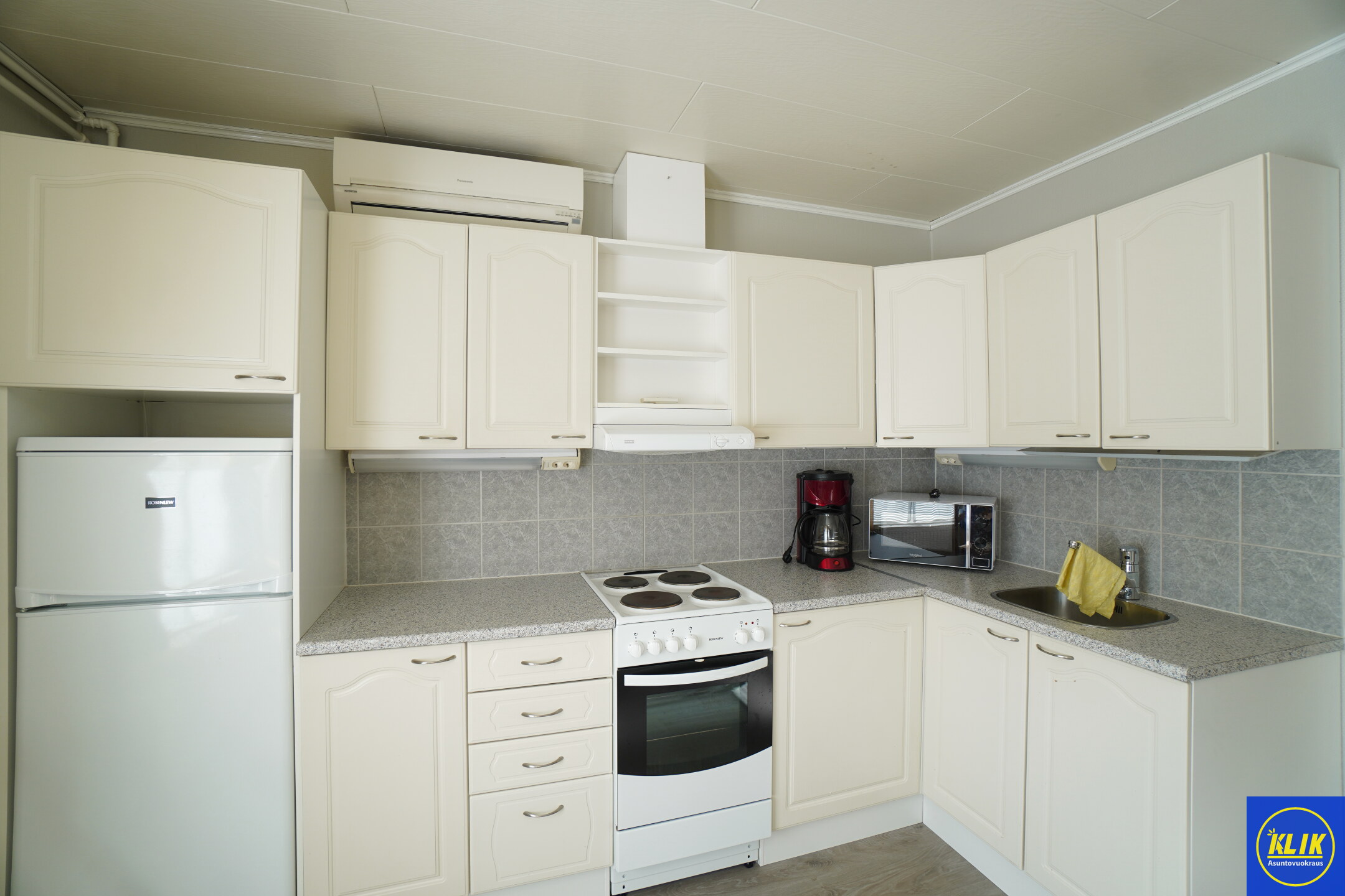 avokeittiölaminaattitasot keittiössä, sähköliesi; liesituuletin, , jääkaappipakastin,