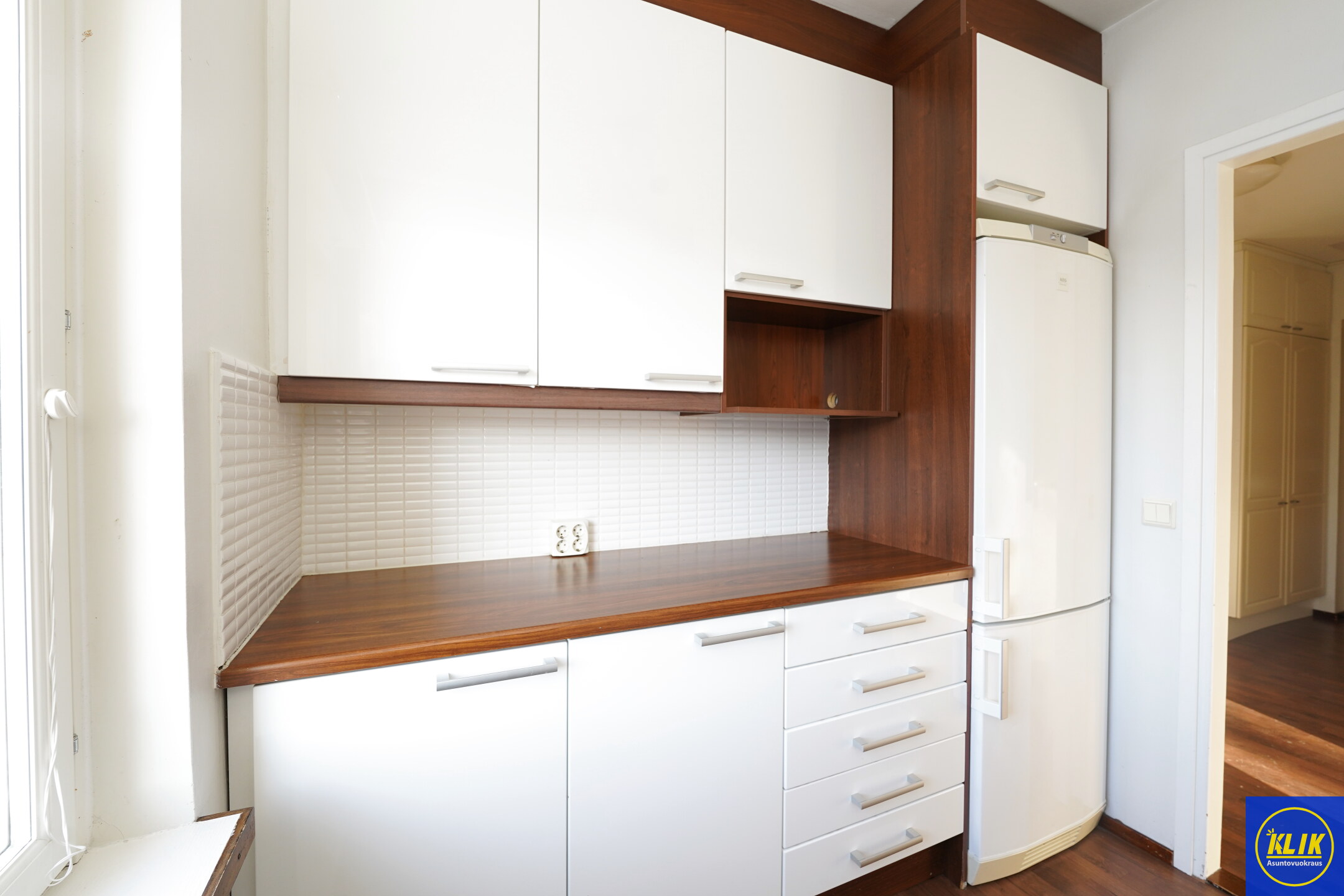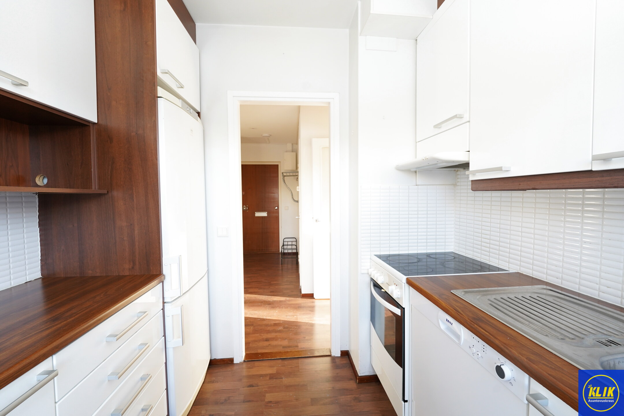 keittokomerolaminaattitasot keittiössä, sähköliesi; keraaminen- tai induktioliesi; liesituuletin, astianpesukone (60cm), jääkaappipakastin, mikrohylly