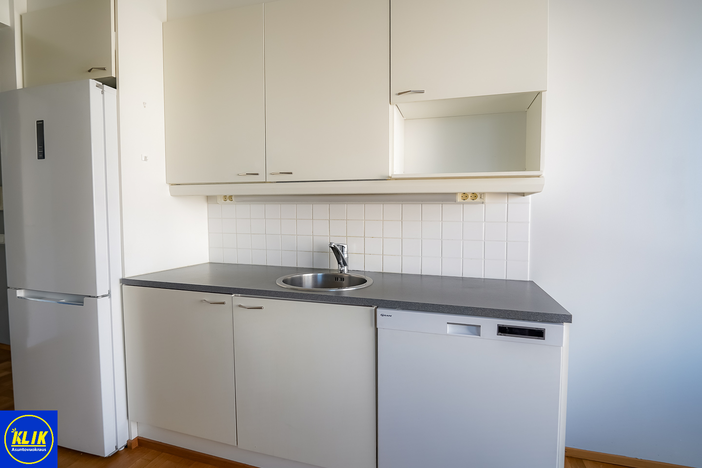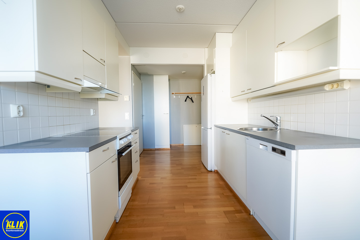 erillinen keittiölaminaattitasot keittiössä, keraaminen- tai induktioliesi; liesituuletin, astianpesukone (60cm); pesukoneliitos, jääkaappipakastin, tilaa isolle ruokapöydälle; paljon kaappitilaa; paljon työskentelytilaa; mikrohylly