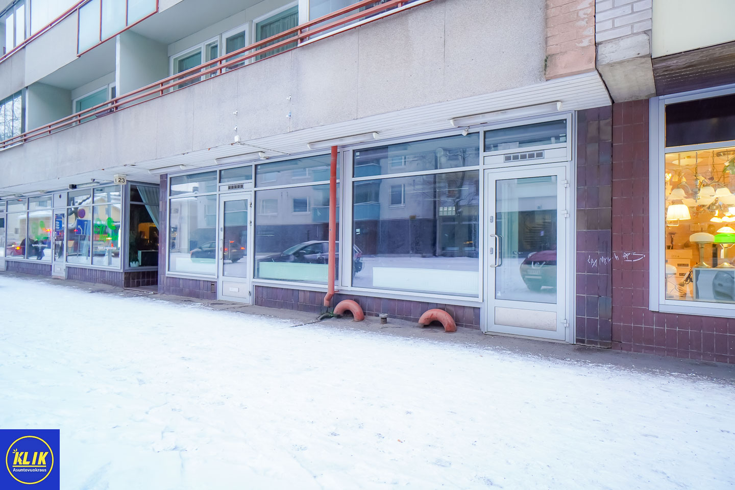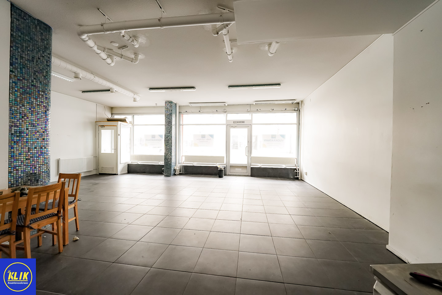 tila sijaitsee katutasossa, näyteikkunat kadun puolelle; isot näyteikkunat; tuulikaappi, Keittiö: Tilassa on keittiö, laminaattitasot keittiössä, jääkaappi, WC ja pesutilat: tilassa on oma wc; useita WC:tä, Vesipiste: