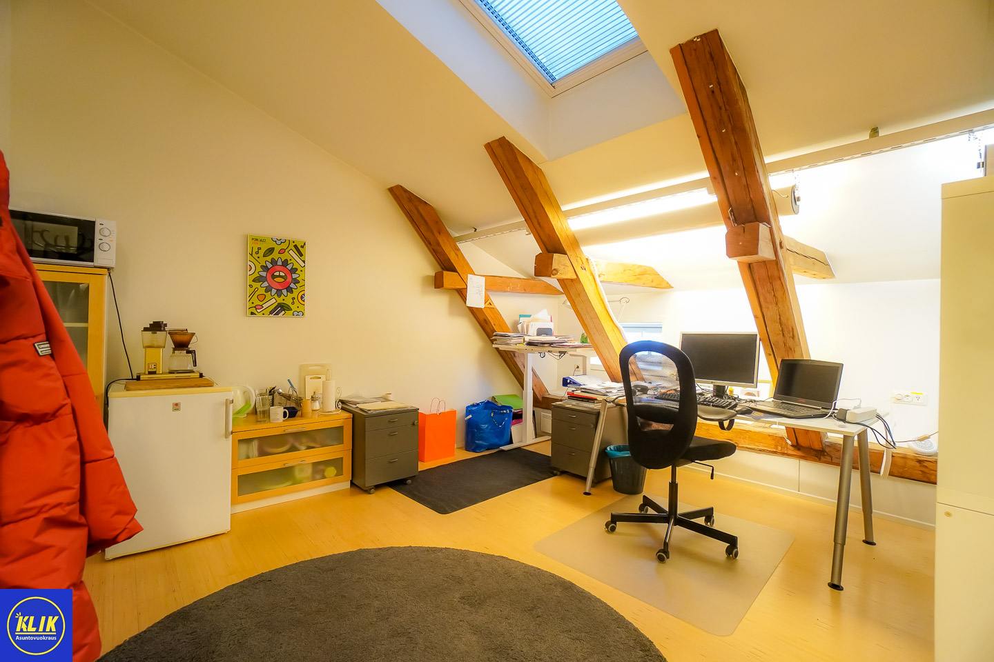 Upealta paikalta, Kivi-Porista, Kokemäenjoen varrelta vuokrattavissa remontoitu ylimmän kerroksen toimitilakokonaisuus, joka sopii monenlaiselle toimijalle. Tila sijaitsee Porin keskustassa, muutaman sadan metrin päässä kävelykadusta ja Puuvillan välittömässä läheisyydessä. Uusi jokikeskusmiljöö ja sen tarjoamat palvelut valmistuvat ensi kesänä aivan viereen.