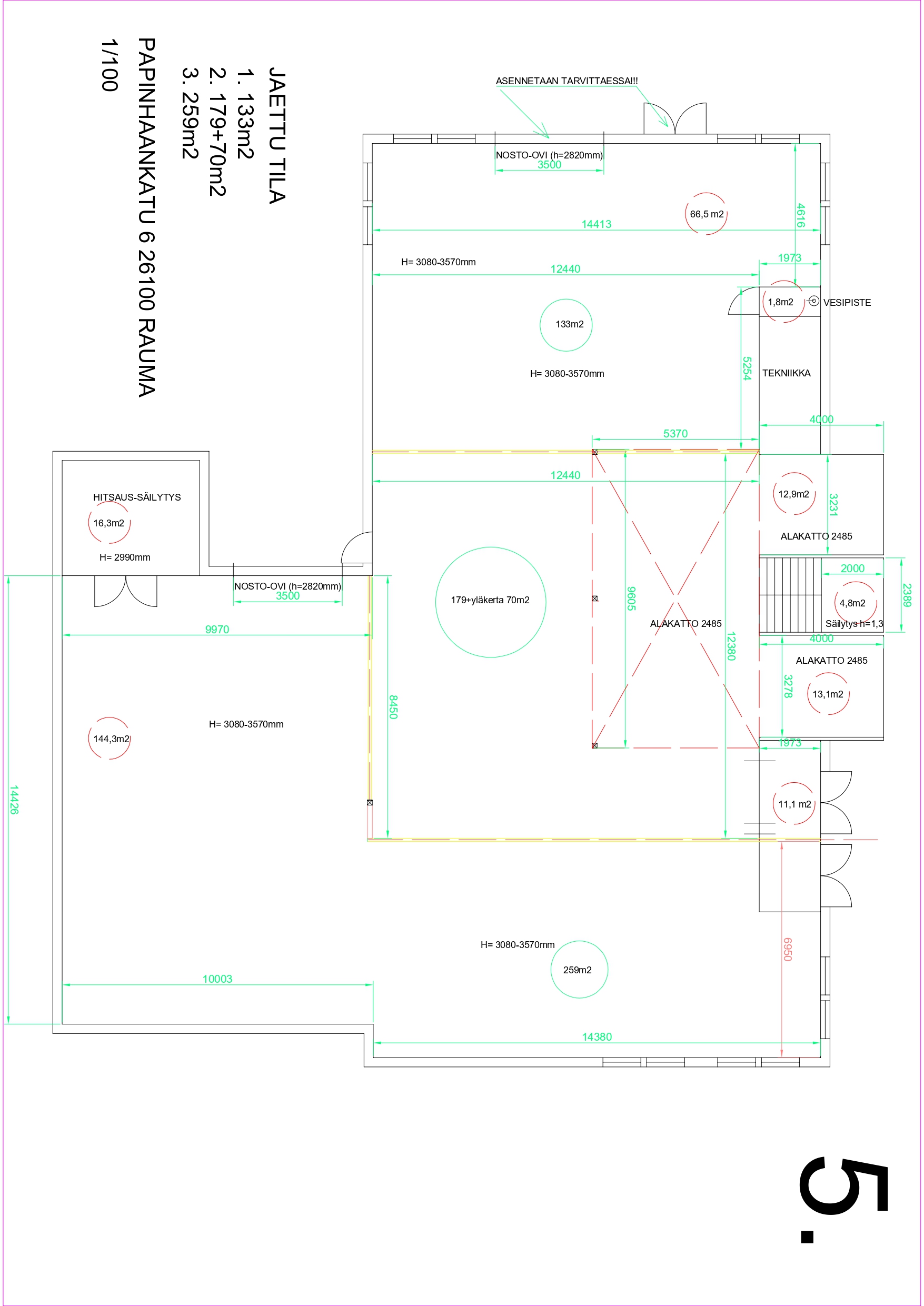 Tila on mahdollista myös jakaa useampaan osaan. Tilasta on vuokrattavissa noin. 133m² - 700m². Esimerkki mahdollisesta tilan jaosta kuvissa. Kysy lisää!