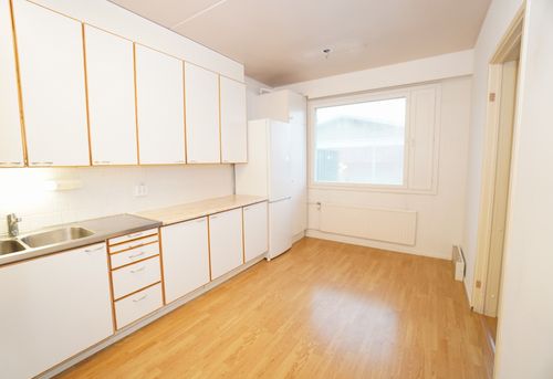 Hieno valoisa koti, jonka kaikki neliöt ovat tehokkaasti käytössä. Asunnon tilavan olohuoneen kautta on kulku omalle terassille. Keittiö soveltuu hyvin isollekin perheelle, sillä tilaa on ruokaryhmälle ja säilytystilaa on kaappien muodossa reilusti.