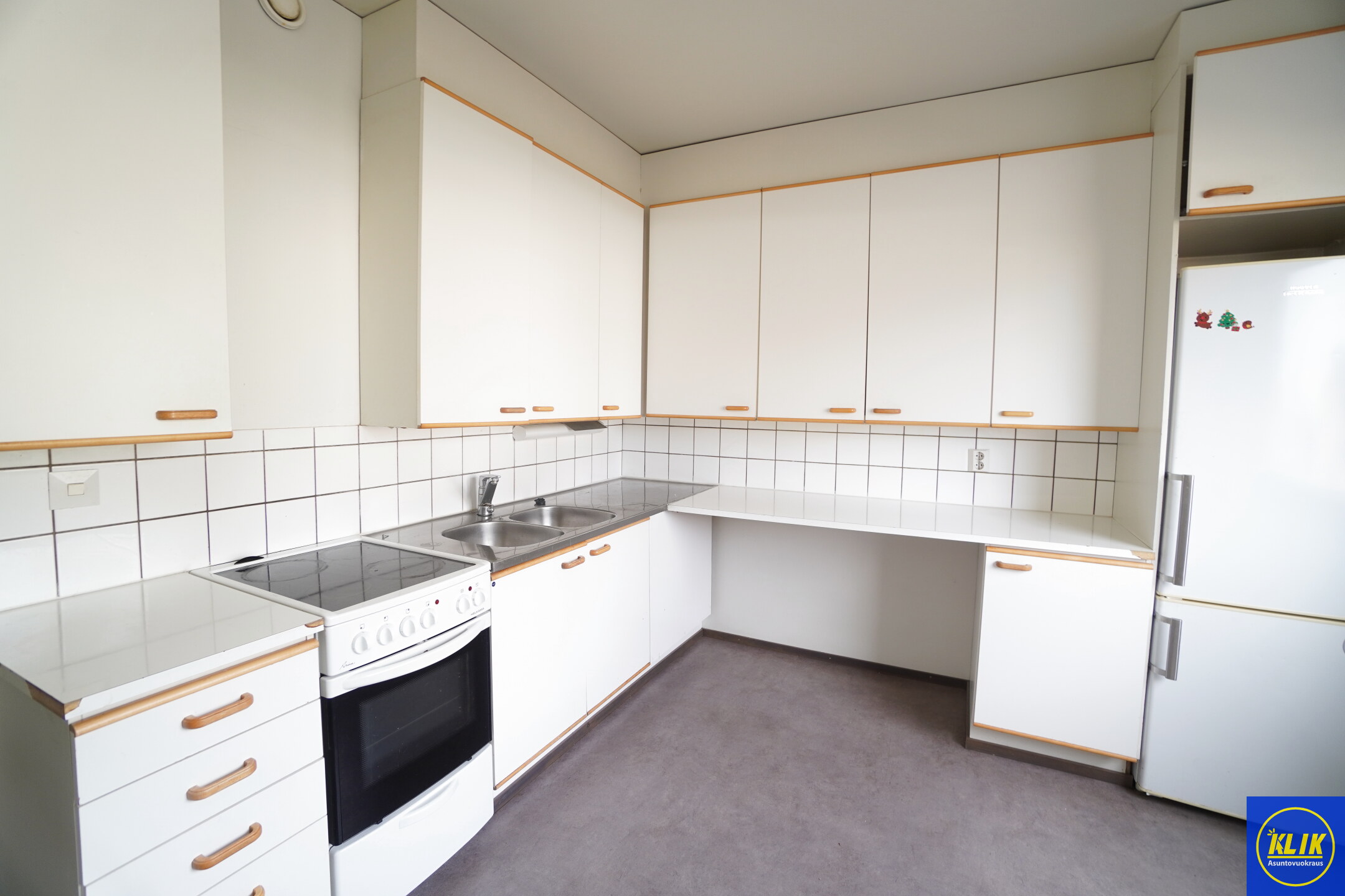 erillinen keittiölaminaattitasot keittiössä, keraaminen- tai induktioliesi, , jääkaappipakastin, tilaa isolle ruokapöydälle; paljon kaappitilaa; paljon työskentelytilaa