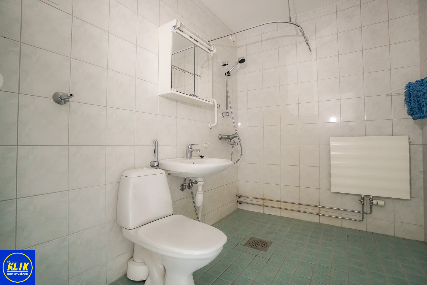 laattalattia; laattaseinä, , peilikaappi, suihku, , pesukonevalmius,
