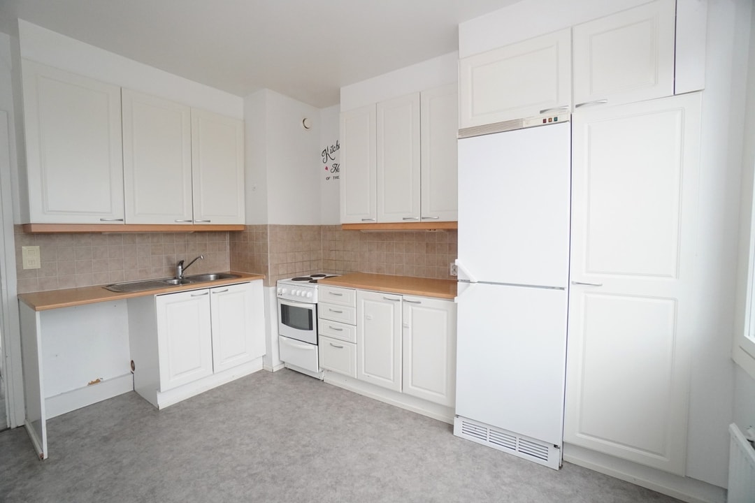 Tilava isonkin perheen koti, jossa on kolme reilun kokoista makuuhuonetta ja tilava olohuone, jonka yhteydessä on parveke. Erillinen iso keittiö, johon mahtuu koko perhe kokkailemaan ja isollekin pöydälle on tilaa. Kaappitilaa on myös reilusti ja keittiössä on paikka valmiina astianpesukonetta varten.