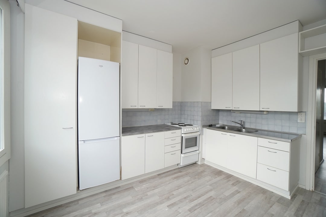 Valoisa asunto tilavilla huoneilla ja hyvällä pohjaratkaisulla. Keittiössä on tilaa isollekin ruokaryhmälle ja siistit kaapistot. Olohuoneen yhteydessä on iso parveke sisäpihalle päin. Makuuhuoneisiin mahtuu sänkyjen lisäksi hyvin muutakin kalustusta tarvittaessa. Kylpyhuone on siistissä kunnossa ja pesukoneelle on liitännät.