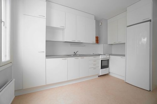 Valoisa asunto tilavilla huoneilla ja hyvällä pohjaratkaisulla. Keittiössä on tilaa isollekin ruokaryhmälle ja siistit kaapistot. Keittiössä on valmis paikka astianpesukoneelle. Olohuoneen kautta on kulku parvekkeelle sisäpihan suuntaan. Makuuhuoneisiin mahtuu sänkyjen lisäksi hyvin muutakin kalustusta. Toisen makuuhuoneen yhteydessä on lisäksi kaapistot. Kylpyhuone on siistissä kunnossa ja pesukoneelle on liitännät.