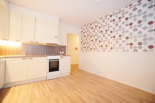 Kaunis asunto, jossa on lämpimän sävyinen laminaatti kautta asunnon ja valkoiset seinäpinnat. Iso keittiö, jonne saa vaivatta ruokapöydän mahtumaan ja kaappitilaa on reilusti. Astianpesukone on valmiina asukkaan käyttöön ja muutkin kodinkoneet on hiljattain uusittu.