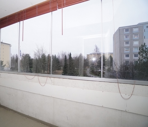 Olohuoneen yhteydessä on iso lasitettu parveke sisäpihalle päin. Makuuhuoneessa on kaapistoja ja tilaa sängylle. Kylpyhuone on myös tilava, joten sinne mahtuu vaikka lisähyllyjä mikäli tarve vaatii. Tila on kauttaaltaan laatoitettu ja lisäksi siellä on pyykinpesukone valmiina asukkaan käyttöön.
