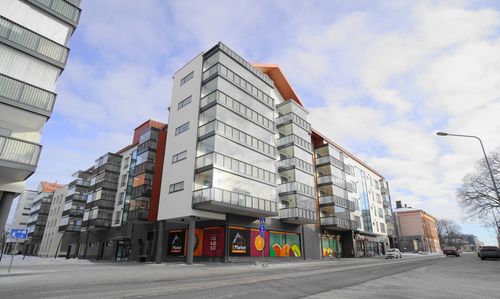 Keskustaan kävelet hetkessä ja talon alakerrasta löytyy K-Market.