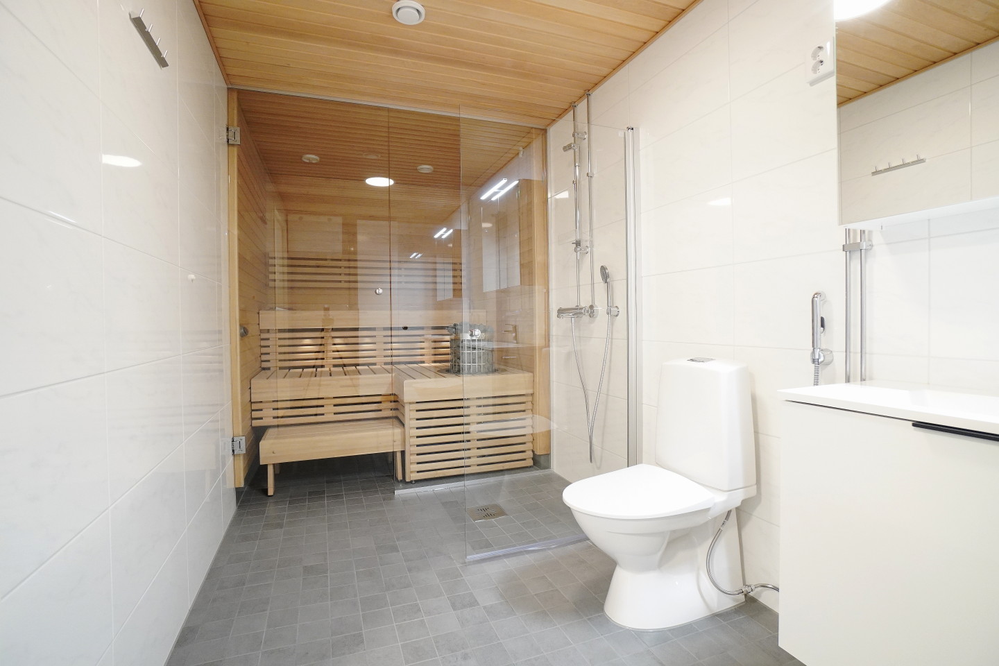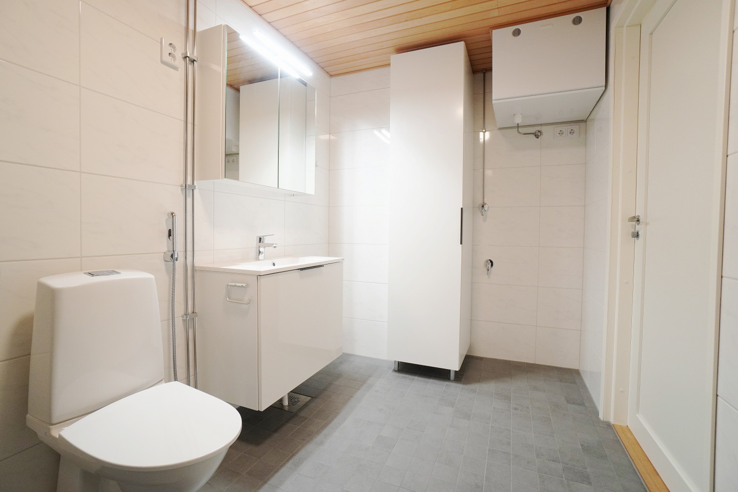 laattalattia; laattaseinä, , allaskaappi; peilikaappi; korkea kaappi, suihku; suihkuseinä, , pesukonevalmius, kylpyhuoneessa lattialämmitys, , , , ,