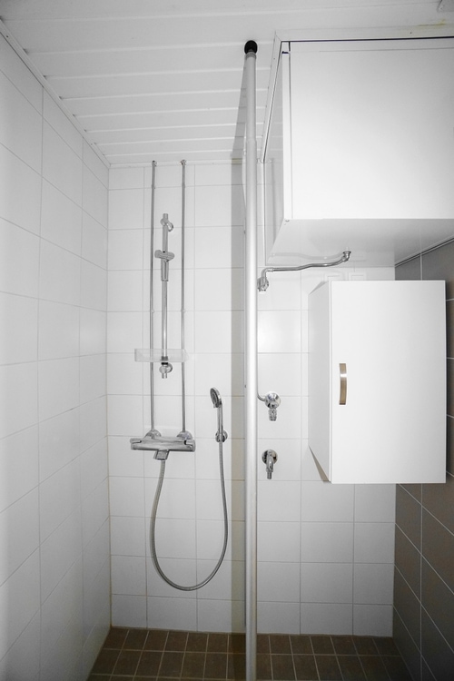 laattalattia; laattaseinä, allaskaappi; peilikaappi, suihku; suihkuseinä, pesukonevalmius
