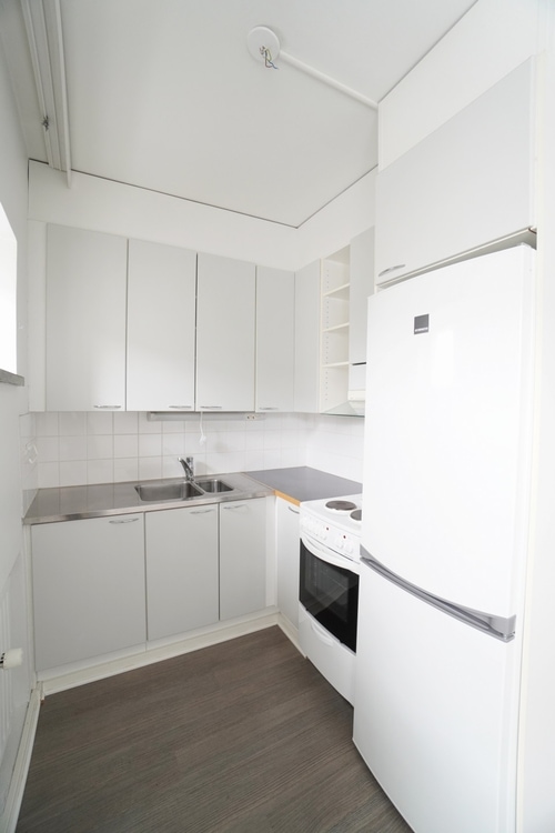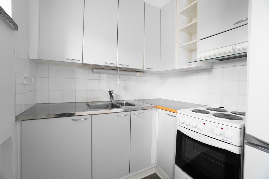 Viidennen kerroksen heti vapaa asunto Antinkadulta. Siistikuntoisessa asunnossa on yhtenäinen laminaattilattia ja seinäpinnat ovat vaaleat. Keittiössä on asuntoon nähden hyvin kaappitilaa. Kaikki tarvittavat huonekalut mahtuvat huoneeseen vaivatta. Kylpyhuoneessa on liitännät pyykinpesukoneelle.