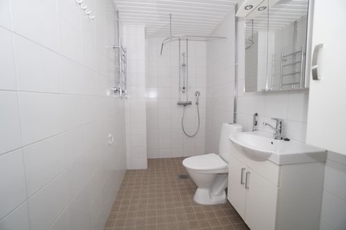 laattalattia; laattaseinä, allaskaappi; peilikaappi, suihku, pesukonevalmius, lattialämmitys