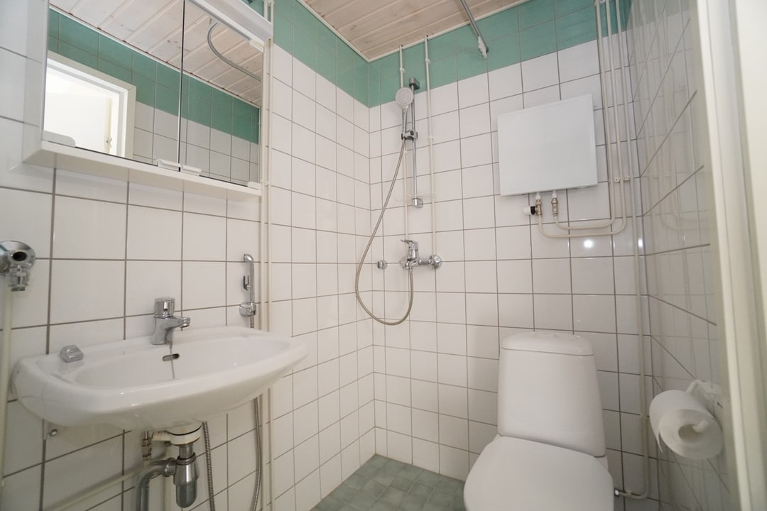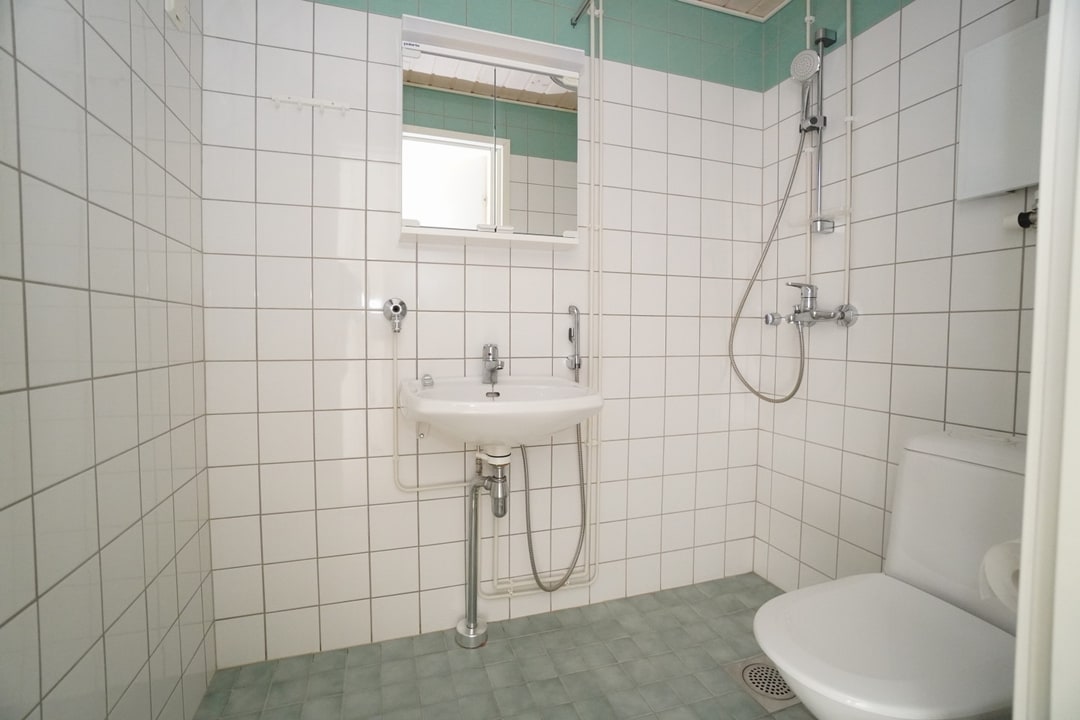 laattalattia; laattaseinä, peilikaappi, suihku, pesukonevalmius; taloyhtiössä pesutupa