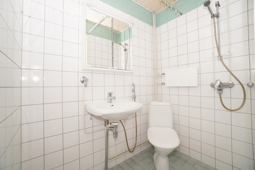 laattalattia; laattaseinä, peilikaappi, suihku, pesukonevalmius; taloyhtiössä pesutupa,