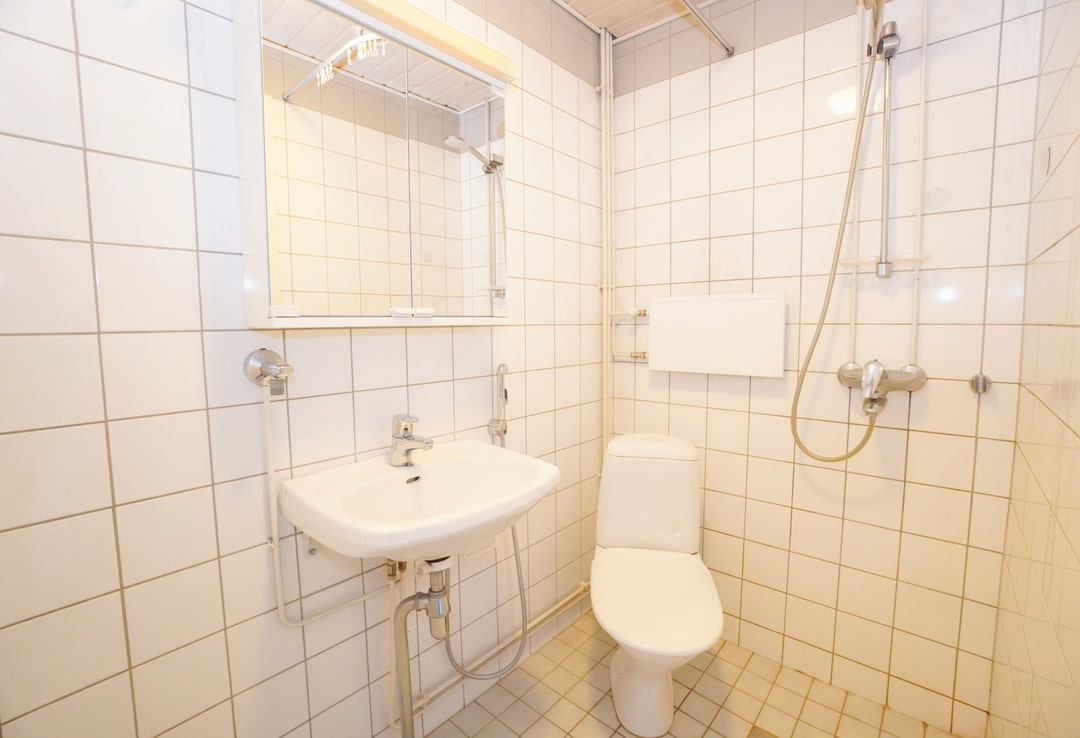 laattalattia; laattaseinä, peilikaappi, suihku, pesukonevalmius; taloyhtiössä pesutupa