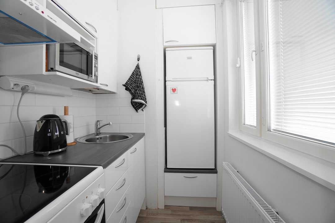 Koko asunto on kauttaaltaan siistissä kunnossa ja asuntoa on pidetty hyvin. Keittiössä on keraaminen liesi ja jääkaappipakastin. Ruokapöytä mahtuu hyvin olohuoneen puolelle. Linjasaneerauksen yhteydessä uusitussa kylpyhuoneesta löytyy pyykinpesukone valmiina sekä suihkuseinällinen suihkutila. Makuuhuoneessa kaapistot. Makuuhuoneesta kulku vaatehuoneeseen. Taloyhtiön sauna- ja pesutilat on myös uusittu putkiremontin yhteydessä.