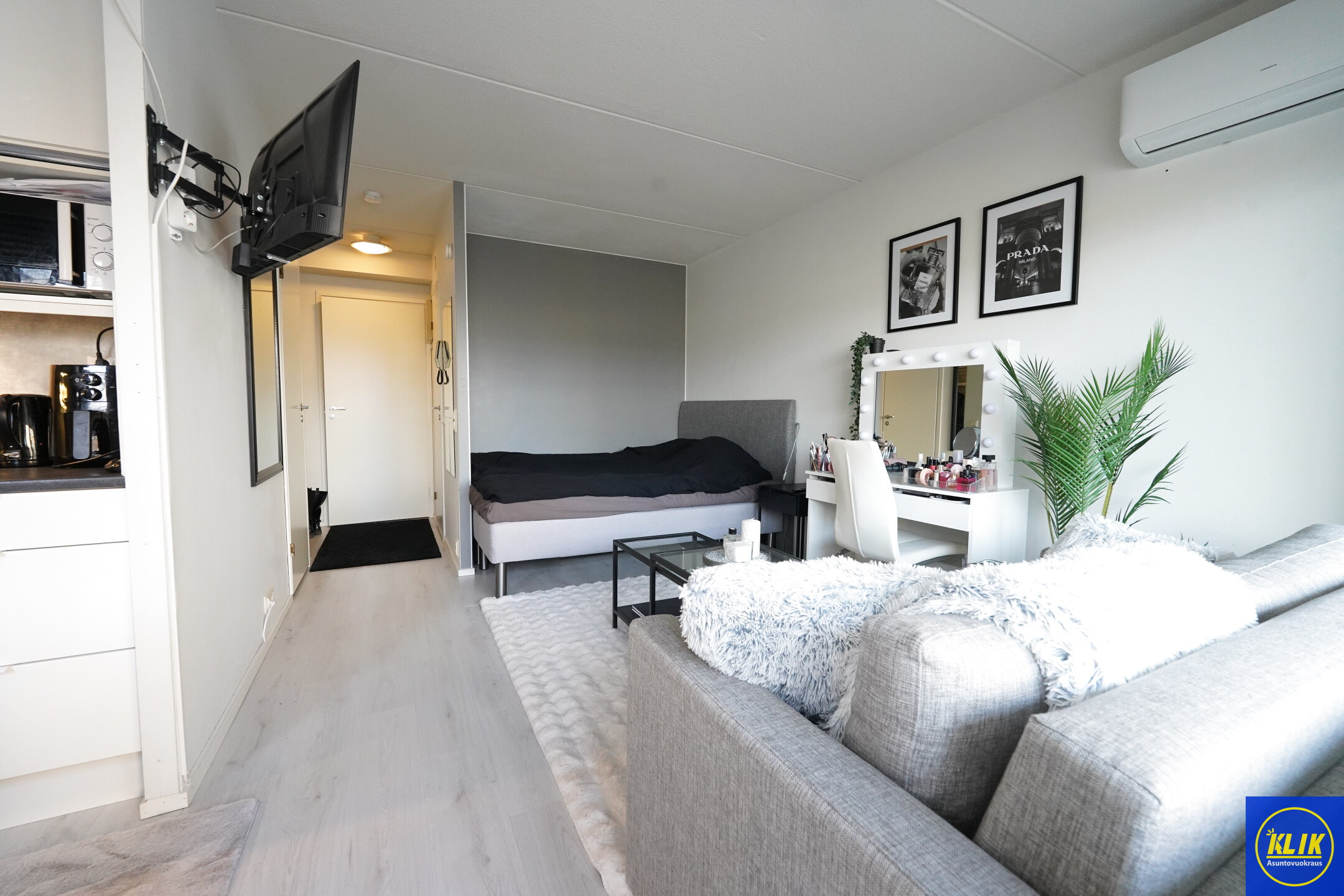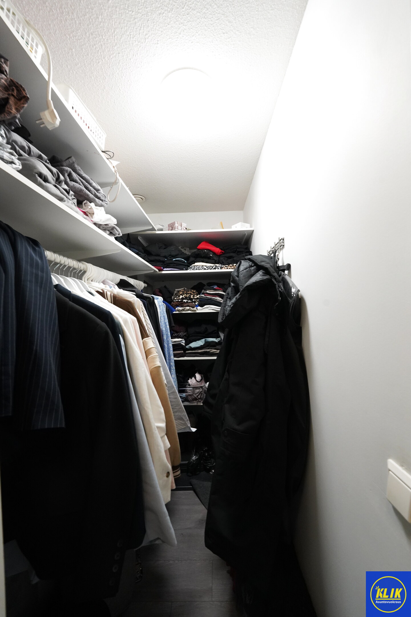 Säilytystilaa on yksiön kokoluokkaan nähden poikkeuksellisen paljon: eteisessä on korkea kaapisto ja asunnossa on lisäksi erillinen vaatehuone. Asumiseen kuuluu myös erillinen varastotila. Kylpyhuoneessa myös peilikaappii ja leveä allaskaapisto.