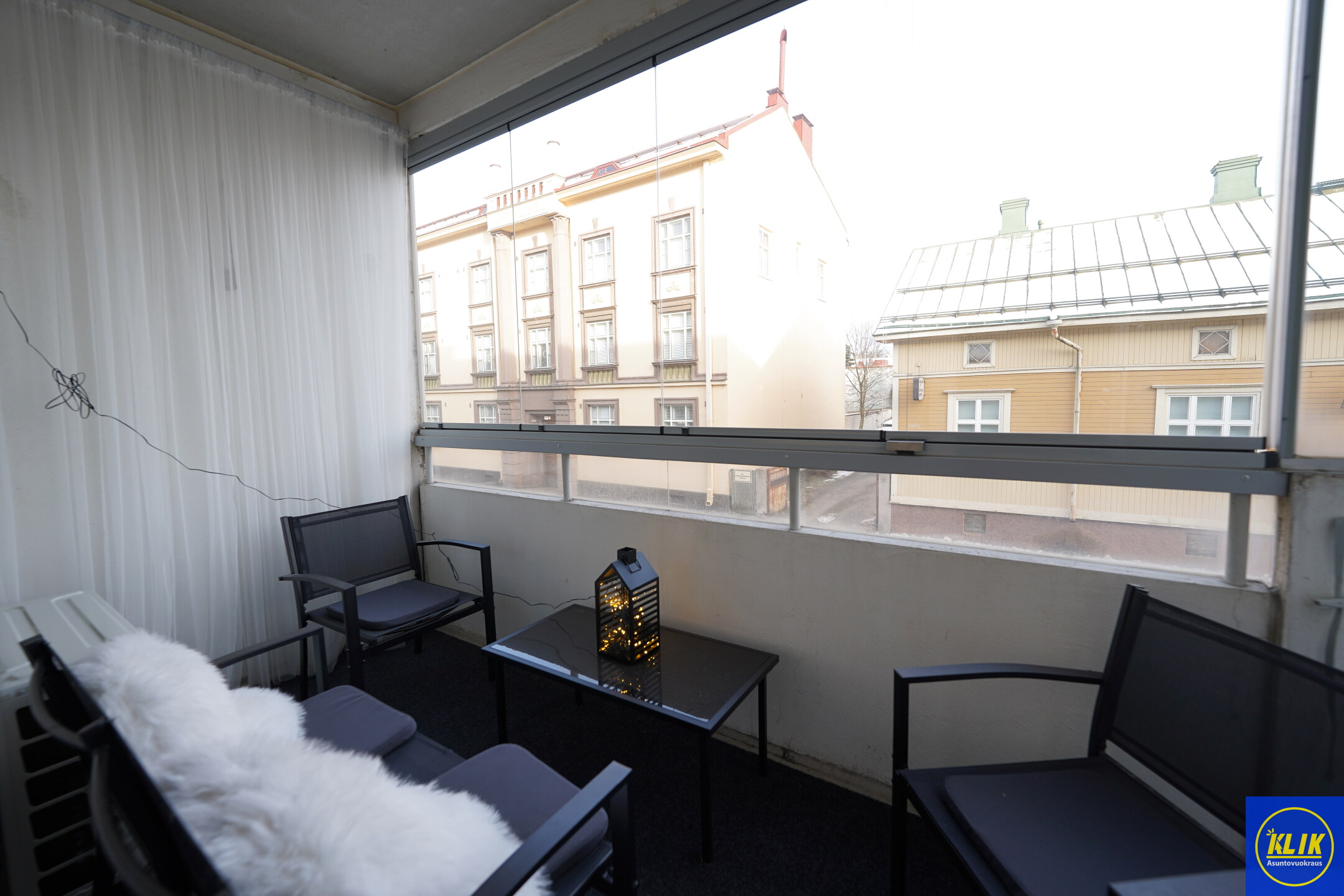 Tilava lasitettu parveke, josta saa "lisä huoneen" aikaisin keväällä pitkälle syksyyn.