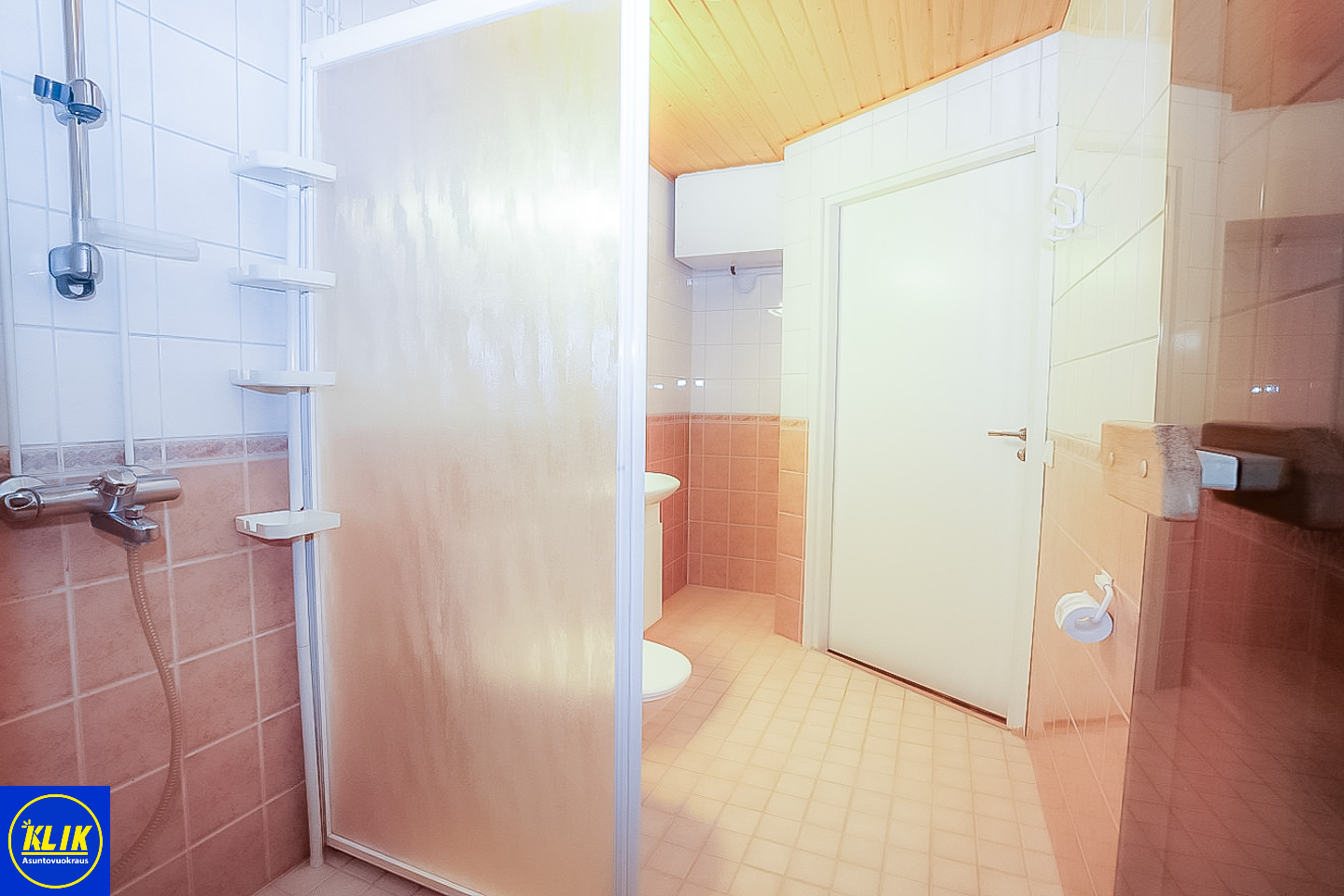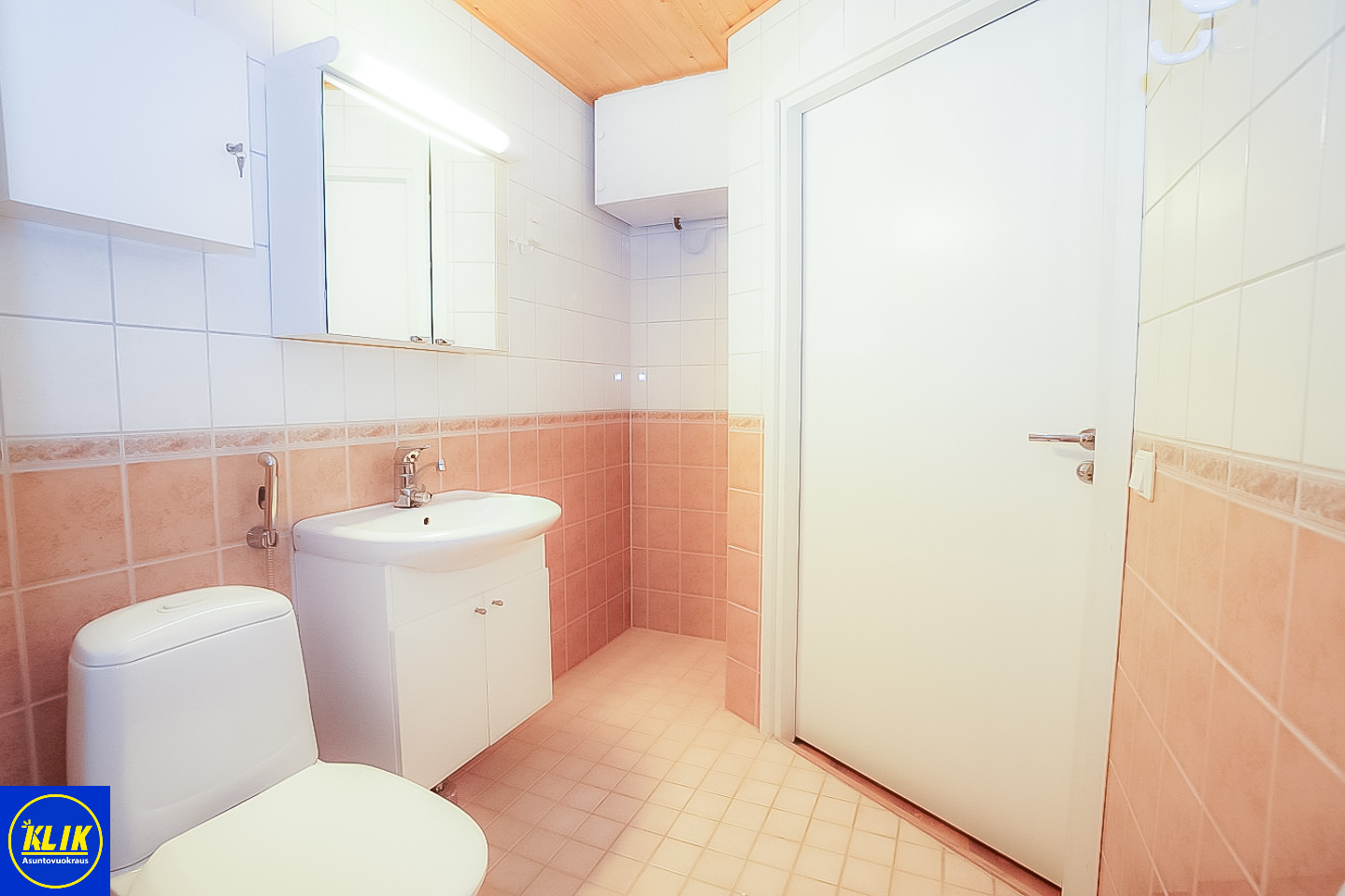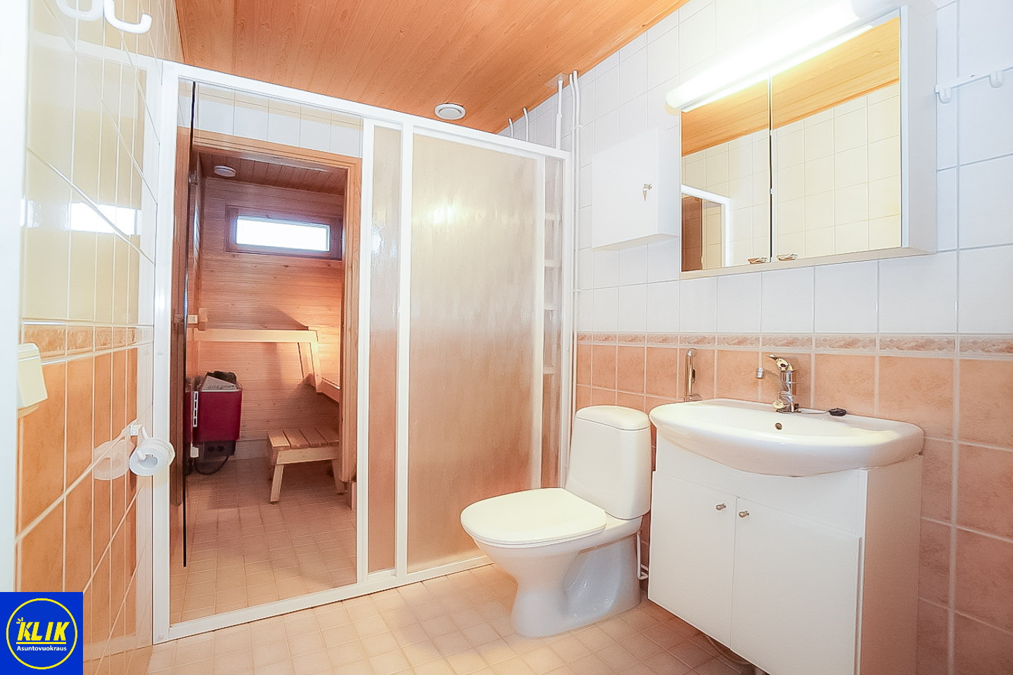 laattalattia; laattaseinä, , allaskaappi; peilikaappi, suihku; suihkuseinä, , pesukonevalmius, kylpyhuoneessa lattialämmitys; oma sauna; kylpyhuoneessa avattava ikkuna