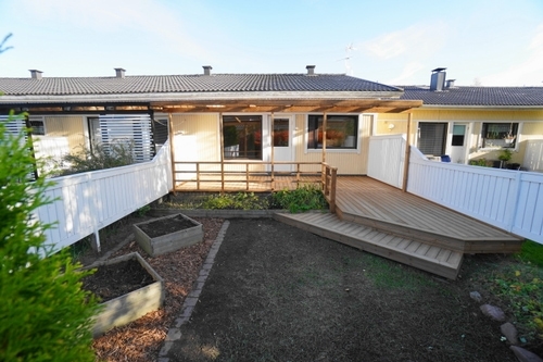Keittiössä on kauniit pinnat sekä tasot ja rosteriset uudet kodinkoneet. Integroitu astianpesukone löytyy tästä keittiöstä. Olohuoneen puolelta on käynti juuri uusitulle katetulle etelä terassille. Isolle terassille mahtuu kaikki kalusteet sekä grilli, ja suojaisa pihakin laitettu kauniiksi.