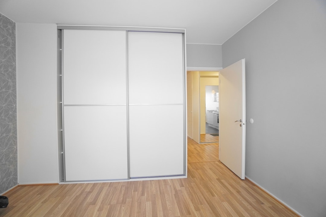 Makuuhuone on tilava ja säilytystilana toimii upea liukuovikaapisto. Parisänky mahtuu tilaan vaivatta ja huone sijaitsee rauhallisen sisäpihan suuntaan.