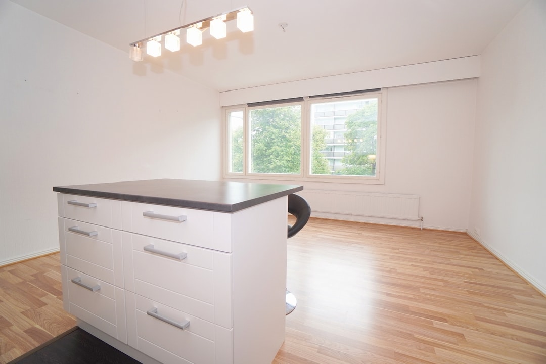 Hieno kolmannen kerroksen asunto putkiremontoidusta taloyhtiöstä. Valoisan asunnon pohjaratkaisu on hyvä. Avokeittiö tekee tilasta yhtenäisen ja avaran olohuoneen kanssa. Keittiö on kauttaaltaan remontoitu ja kodinkoneet on uusittu. Kaappeja on reilusti ja työtilana toimii iso saareke. Se toimii tarvittaessa myös ruokapöytänä esimerkiksi baarituolien kanssa. Astianpesukone on helpottamassa arjen askareita.