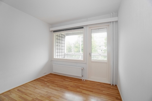 Makuuhuoneen yhteydessä on lasitettu tilava parveke puiston suuntaan. Makuuhuone on tilava ja sen yhteydessä on paljon kaappitilaa. Parisänky mahtuu tilaan vaivatta. Väreiltään asunto on raikkaan vaalea ja sama värimaailma jatkuu myös kylpyhuoneen puolella. Taloyhtiössä on toteutettu putkiremontti, jonka yhteydessä kylpyhuone on uusittu. Kylpyhuone on siis täysin uusi. Varusteina mm. pyyhekuivain ja pesukoneliitäntä. Tilassa on myös lattialämmitys.