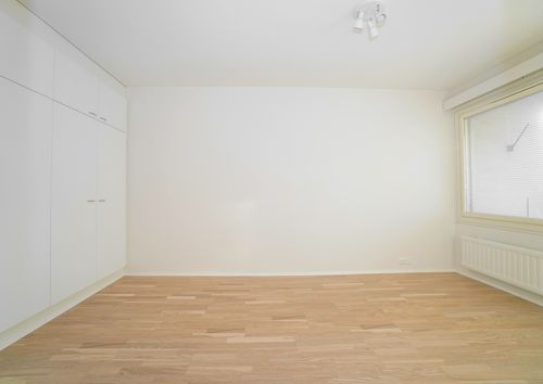 Tilavan makuuhuoneen kautta on kulku lasitetulle parvekkeelle puiston suuntaan. Olohuone on reilun kokoinen ja sohvalle on loistavasti tilaa. Väreiltään asunto on raikkaan vaalea ja sama värimaailma jatkuu myös kylpyhuoneen puolella. Taloyhtiössä on hiljattain toteutettu linjasaneeraus, jonka yhteydessä kylpyhuone on uusittu. Pesukoneelle on paikka valmiina. Eteisessä on lisää kaapistoja säilytykseen.