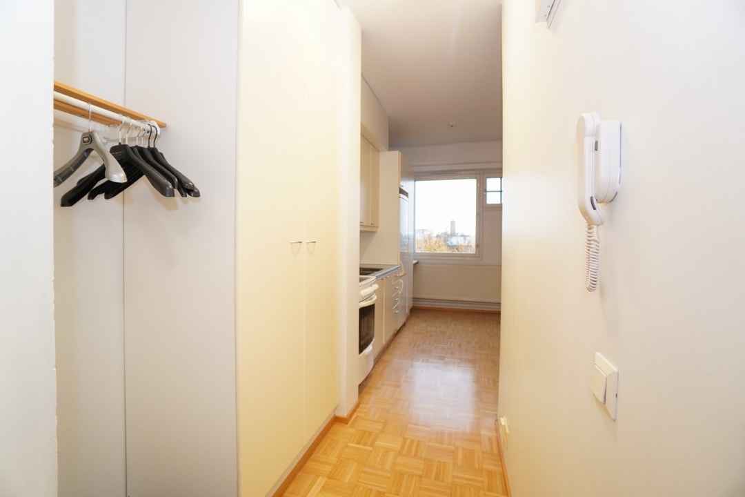 Lattiat: parkettilattiat, seinät: maalatut seinät, katto: maalattu katto, ikkunat:tuuletusikkunat, parisänky mahtuu makuutilaan, , Huoneistokohtaiset erilliset säilytystilat taloyhtiön käytännön mukaan, muut tilat: autopaikat taloyhtiön käytännön mukaisesti; valoisa asunto; kuraeteinen