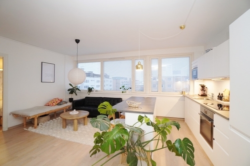Todella upeaksi uudistettu asunto upeilla kaupukinäkymillä vapautumassa Eteläpuistosta. Kuten kuvatkin kertovat, keittiö on täysin remontoitu ja kodinkoneet ovat uutta vastaavat. Integroitu jääkaappipakastin ja astianpesukone kuuluvat varustukseen. Avokeittiö tuo sekä tilan tuntua asuntoon että mahdollistaa näkymän olohuoneen puolelle. Olohuone ja keittiö ovat yhtä avaraa tilaa. Asunnossa on koko seinän leveydeltä ikkunoita, joten koti on hyvin valoisa.
