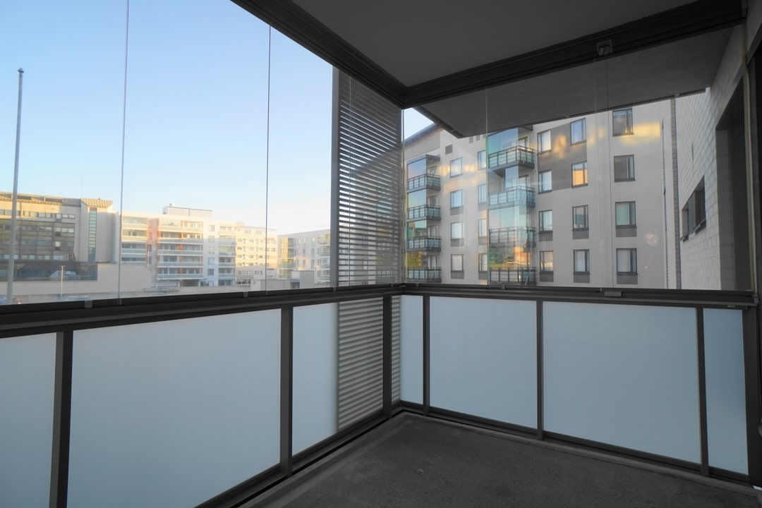 Olohuoneesta on käynti suurelle lasitetulle parvekkeelle. Iso parveke on hyvä jatke olohuoneelle ja se on helppo sisustaa omannäköiseksi. Kylpyhuone on erittäin tilava. Kylpyhuoneessakin on hyvin säilytystilaa ja lisäksi sinne saa pesukoneen. Oma sauna kruunaa kokonaisuuden.