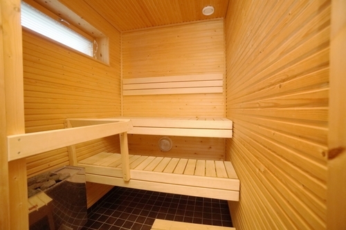 laattalattia; laattaseinä, allaskaappi; peilikaappi, suihku, pesukonevalmius, lattialämmitys; sauna; avattava ikkuna