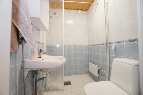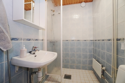 laattalattia; laattaseinä, peilikaappi, suihku; suihkuseinä, pesukonevalmius