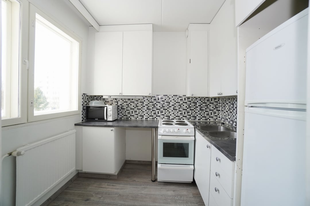 Valoisa ja pinnoiltaan hyväkuntoinen yksiö heti vapaana. Asunnon keittiössä on kivasti kaapistoja ja siistit kodinkoneet. Tilavan huoneen yhteydessä on iso lasitettu parveke, jollaista yksiöissä harvemmin onkaan. Alkoviin mahtuu sänky ja eteisessä on kaapistoja säilytystä ajatellen.