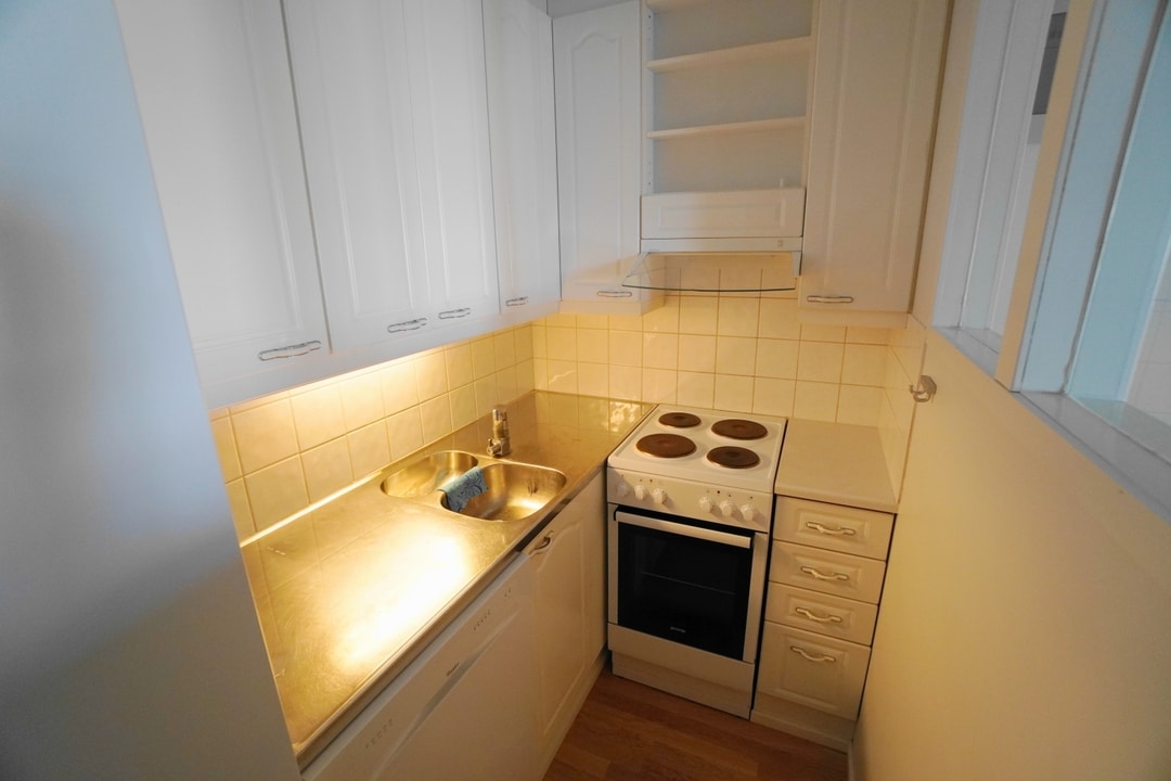 keittokomero, laminaattitasot keittiössä, sähköliesi; liesituuletin, astianpesukone (60cm), jääkaappipakastin