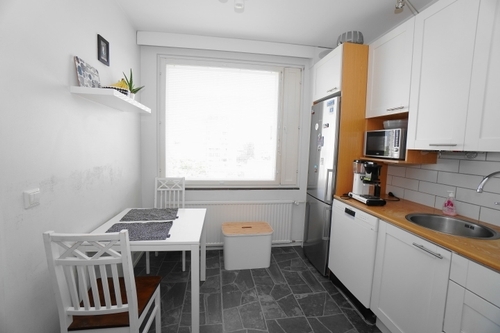 Upeilla näkymillä varustettu kaksio erinomaisella sijainnilla. Valoisa asunto on pinnoiltaan siisti ja omaa myös erinomaisen pohjaratkaisun. Keittiöön on uusittu rosteriset kodinkoneet ja myös astiapesukone löytyy arkea helpottamaan. Tilaan mahtuu myös ruokapöytä.