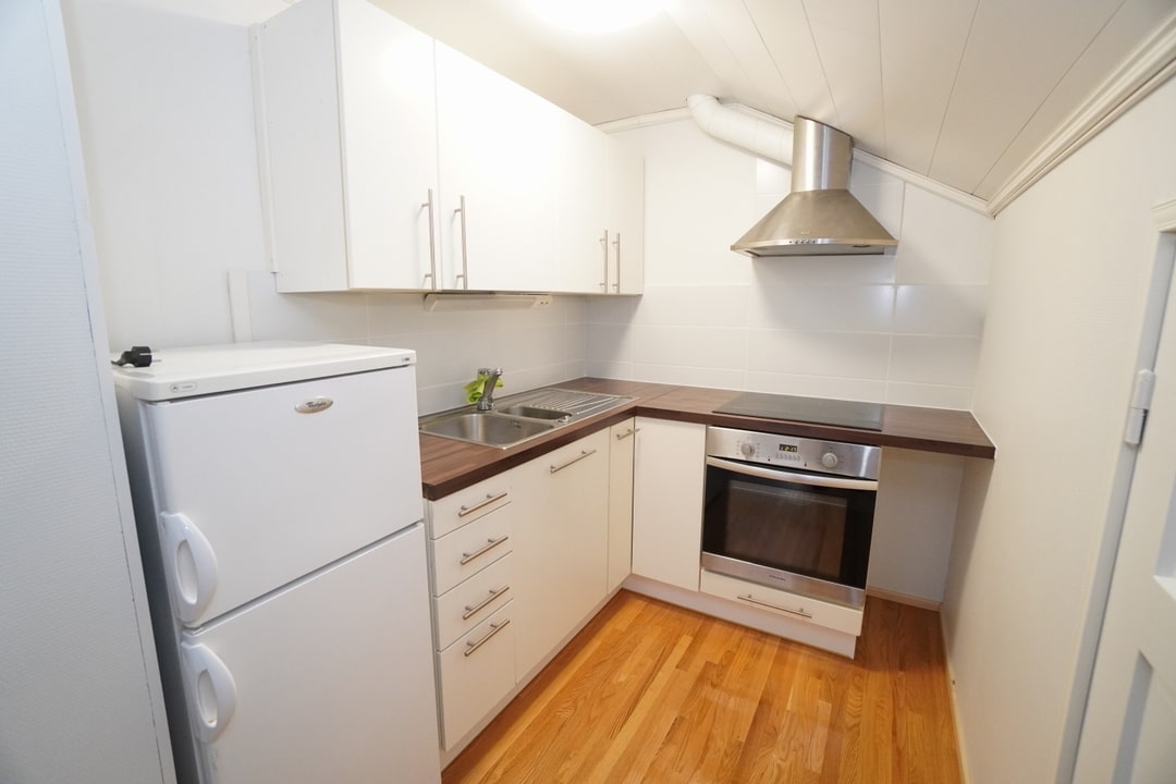 Valoisa yläkerran asunto idyllistä puutalosta heti vapaana. Asunto kattaa keittiön, olohuoneen sekä tilavan makuuhuoneen. Kylpyhuone on hiljattain uusittu ja kalusteet ovat siistit. Taloyhtiössä on pesukone valmiina asukkaiden käyttöön alakerran tiloissa. iso olohuone on helppo kalustaa ja sinne mahtuu myös ruokapöytä. Makuuhuone on tarpeeksi tilava sängylle.