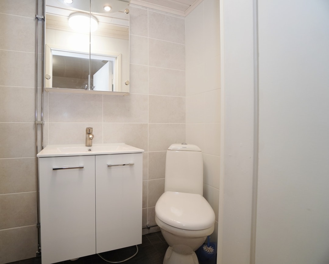 laattalattia; laattaseinä, allaskaappi; peilikaappi, suihku, pesukone; taloyhtiössä pesutupa