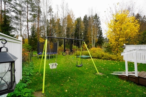 Keittiössä on hyväkuntoiset kodinkoneet, mukaan lukien astianpesukone. isollekin ruokaryhmälle on hyvin tilaa. Olohuoneesta on kulku katetulle terassille. Asuntoon kuluu iso oma suojaisa piha. Upea sijainti esimerkiksi lapsiperheelle, sillä piha rajoittuu metsään ja on tuvallinen paikka temmeltää. Pihaan mahtuvat hyvin niin keinut kuin trampoliinikin.