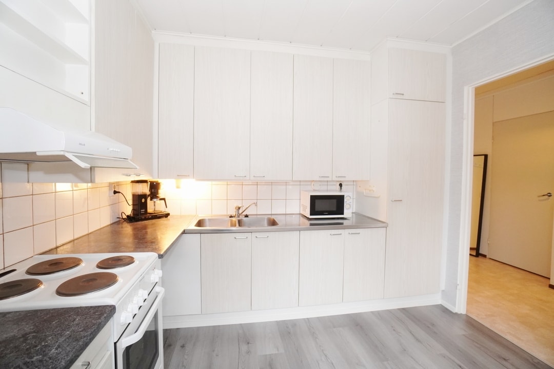 Siisti kaksio rivitalon päädystä hyvällä pohjaratkaisulla. Asunnon keittiöstä on remontoitu mm.lattia on vaihdettu. Keittiöön on tulossa astianpesukone.