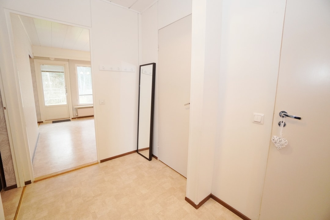 Lattiat: laminaattilattiat; muovimattolattiat, seinät: maalatut seinät; tapetoidut seinät, katto: paneelikatto, ikkunat:sälekaihtimet; tuuletusikkunat, erillinen makuuhuone; parisänky mahtuu makuutilaan; erillinen vaatehuone, , Huoneistokohtaiset erilliset säilytystilat taloyhtiön käytännön mukaan, muut tilat: autopaikat taloyhtiön käytännön mukaisesti; valoisa asunto; oma piha; päätyhuoneisto; useampi sisäänkäynti