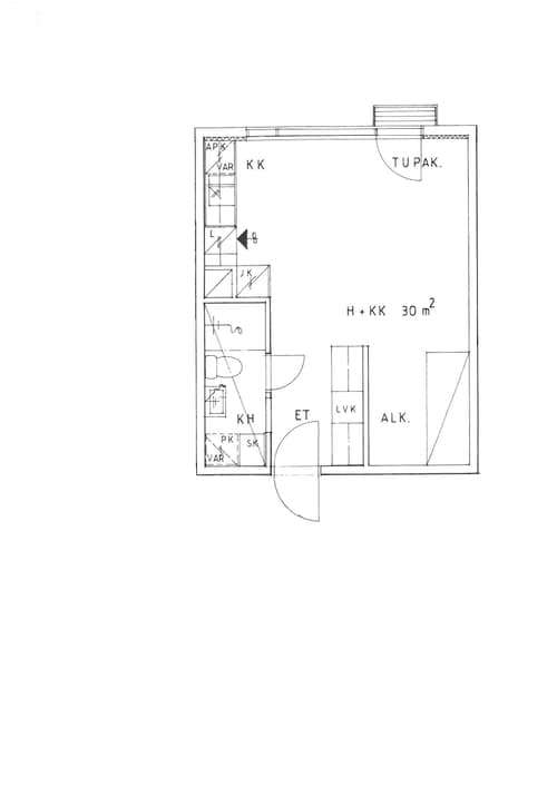 Asunnossa ranskalainen parveke, joka helpottaa esimerkiksi asunnon tuulettamista. Huoneeseen mahtuu hyvin kaikki tarpeelliset kalusteet, sekä alkoviin parisänky. Eteisessä on suuret kaapistot tuomassa lisää säilytystilaa. Fiksun kokoisessa kylpyhuoneessa on säilytystilaa pyykeille ja pesuaineille sekä hyvä paikka pesukoneelle.