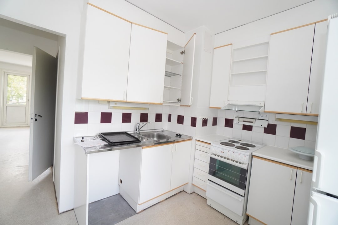 Siistikuntoinen asunto taloyhtiön toisesta kerroksesta. Asuntoa remontoidaan parhaillaan. Lattiaan tulee harmaansävyinen lankku laminaatti ja seinät on maalattu.