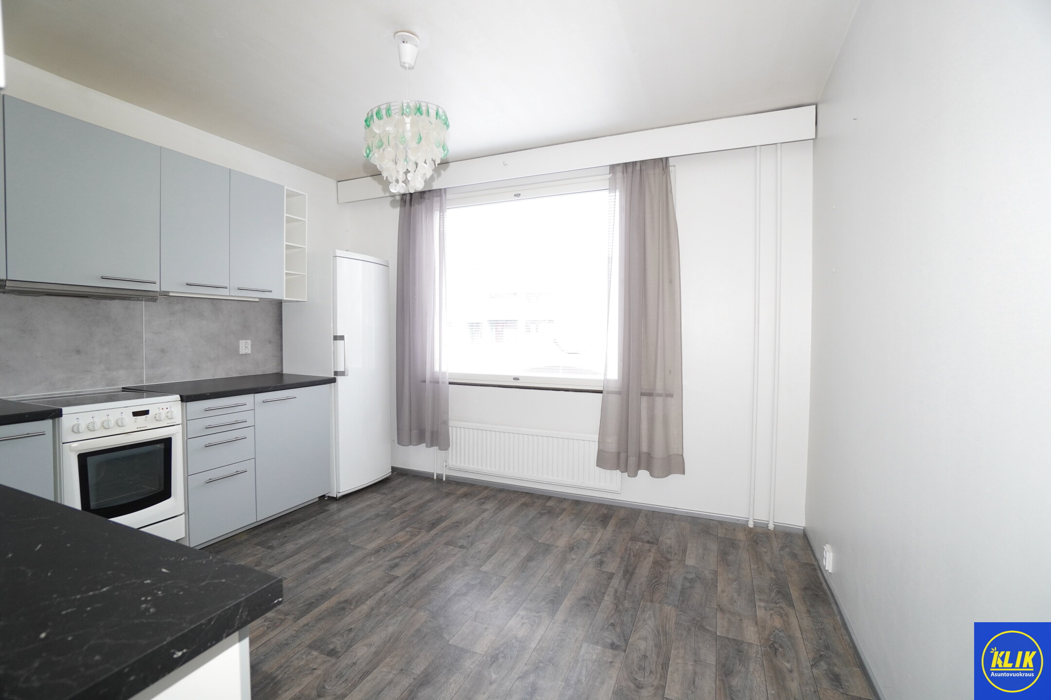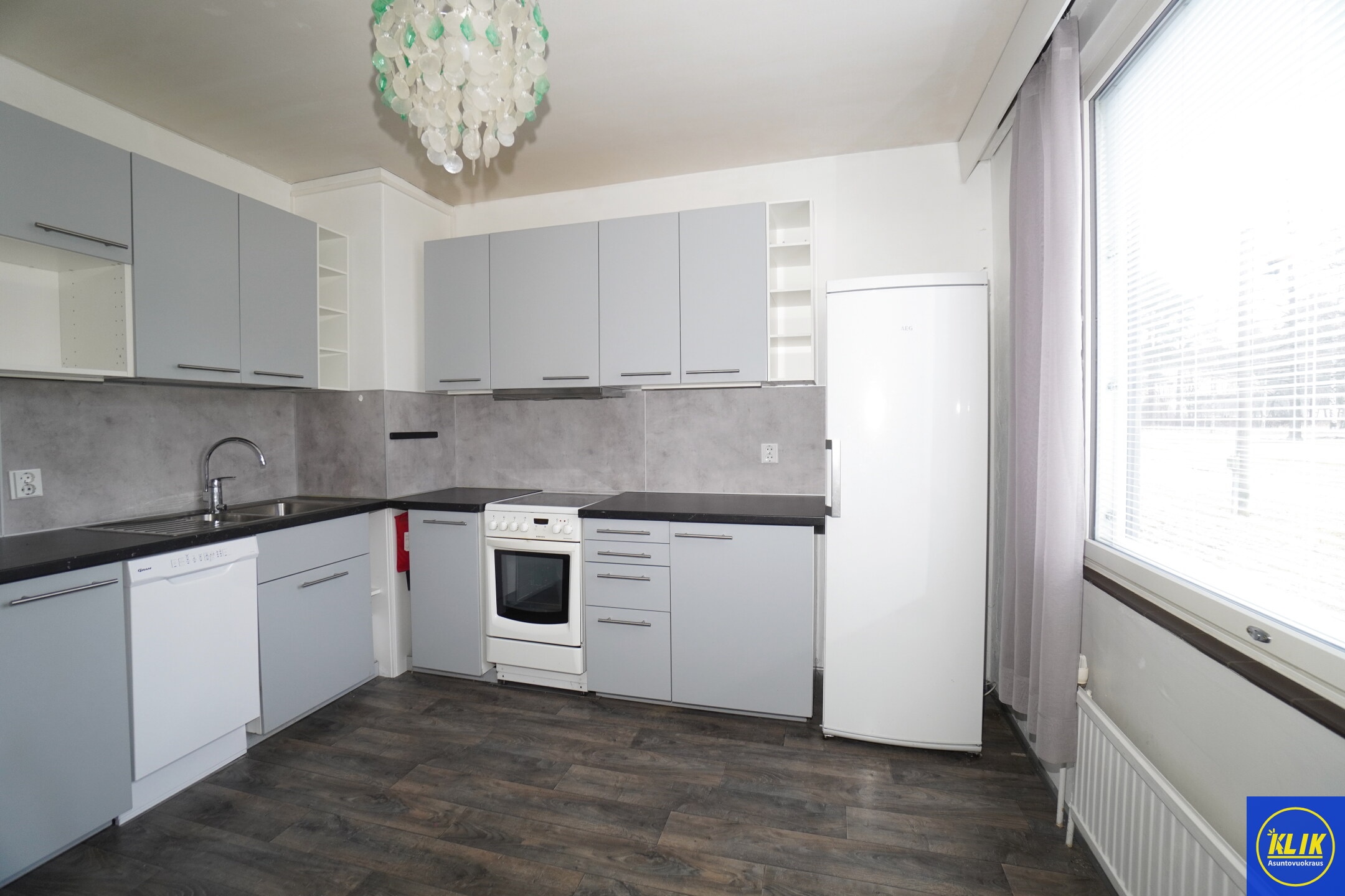 erillinen keittiölaminaattitasot keittiössä, keraaminen- tai induktioliesi; liesituuletin, astianpesukone (45cm), jääkaappi; pakastin, tilaa isolle ruokapöydälle; paljon kaappitilaa; paljon työskentelytilaa; mikrohylly