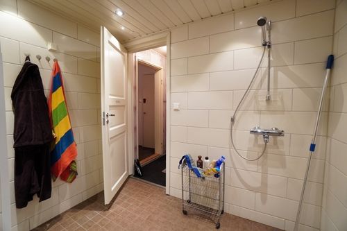 Kylpyhuone on uusittu täysin muutama vuosi sitten. Se on iso ja pyykinpesukone tai vaikka pesutorni mahtuu tilaan hyvin. Sauna on myös uusittu ja sinne mahtuu vaikka koko perhe kerralla saunomaan! Tästä saunasta löytyy puukiuas, joka takaa hyvät ja pehmeät löylyt. Asunnossa on erillinen wc, joka sekin remontoitu todella kivaksi.