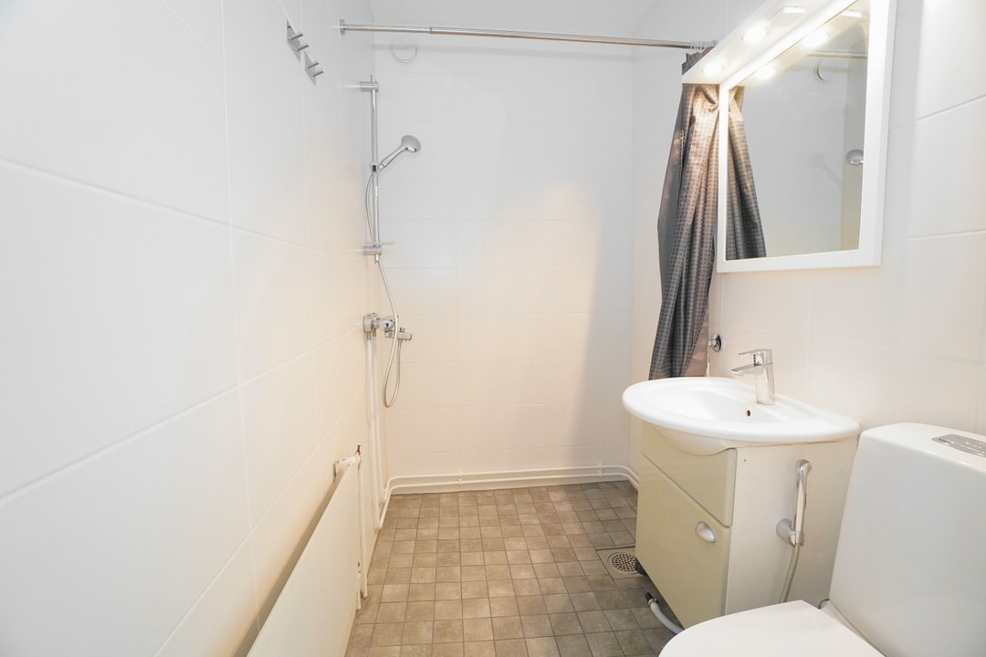 laattalattia; laattaseinä, allaskaappi, suihku, pesukone; pesukonevalmius